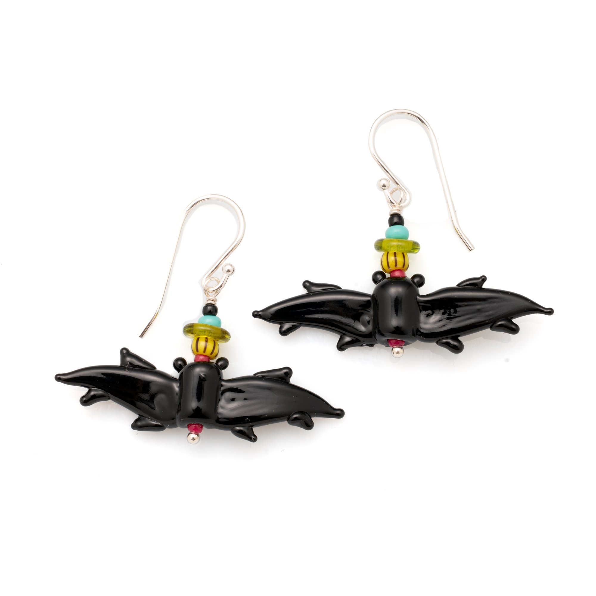 Made from my handmade glass bat beads, seed beads and sterling earwires.