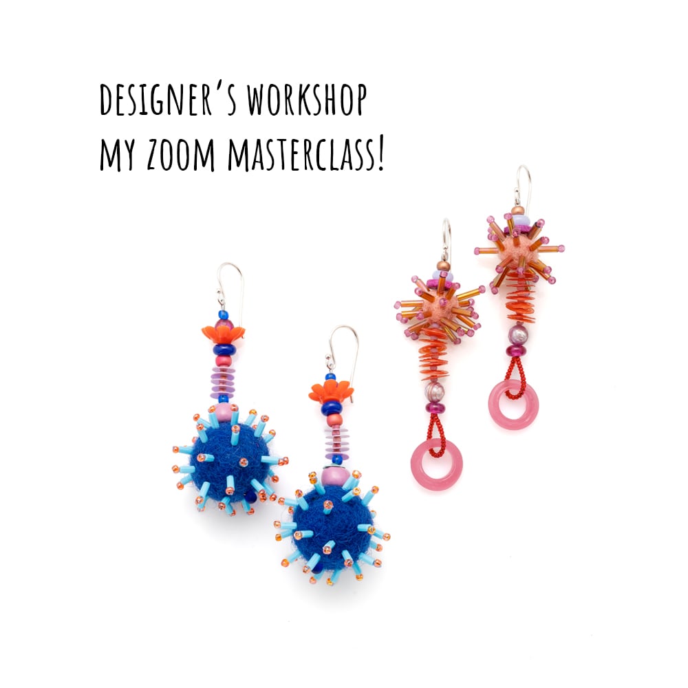 We’ll meet for two or three hours (the first Sunday of) each month on Zoom, and I’ll give a little artist’s talk about a design topic or theme. It’ll be more like a conversation – with questions and tips and discussion. I’ll demonstrate a technique (wire-work, knotting, crimping, stitching, composition) to get us excited for a community design challenge. I’ll give you context for the technique – a few suggested (but optional) projects. After the demos, we’ll talk through considerations like wearability and fragility, as well as the different ways we work and practice…how to actually decide when it’s time to begin “making”. I love talking about pattern, form, color and design, and finally after 40 years of making jewelry, I feel I have a clear and teachable vocabulary and a huge repertoire of techniques to share.