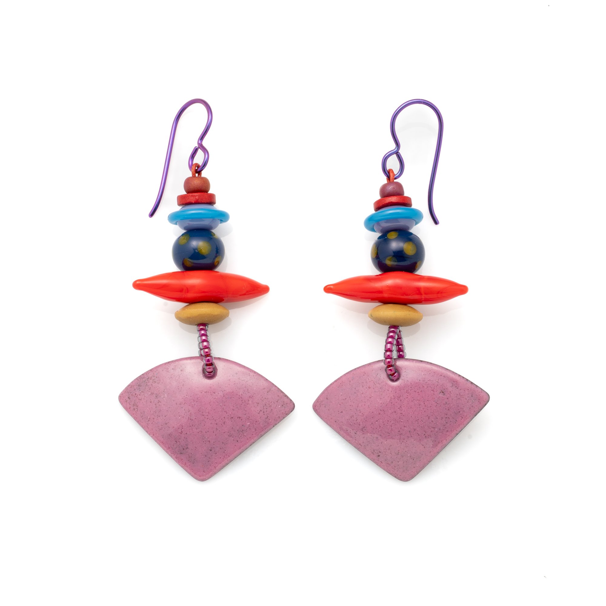 These are made from my handmade glass beads, Gardanne Beads enameled brass fans, ceramic discs and seed beads. They are strung on Soft Flex beading wire with niobium (hypoallergenic) earwires.