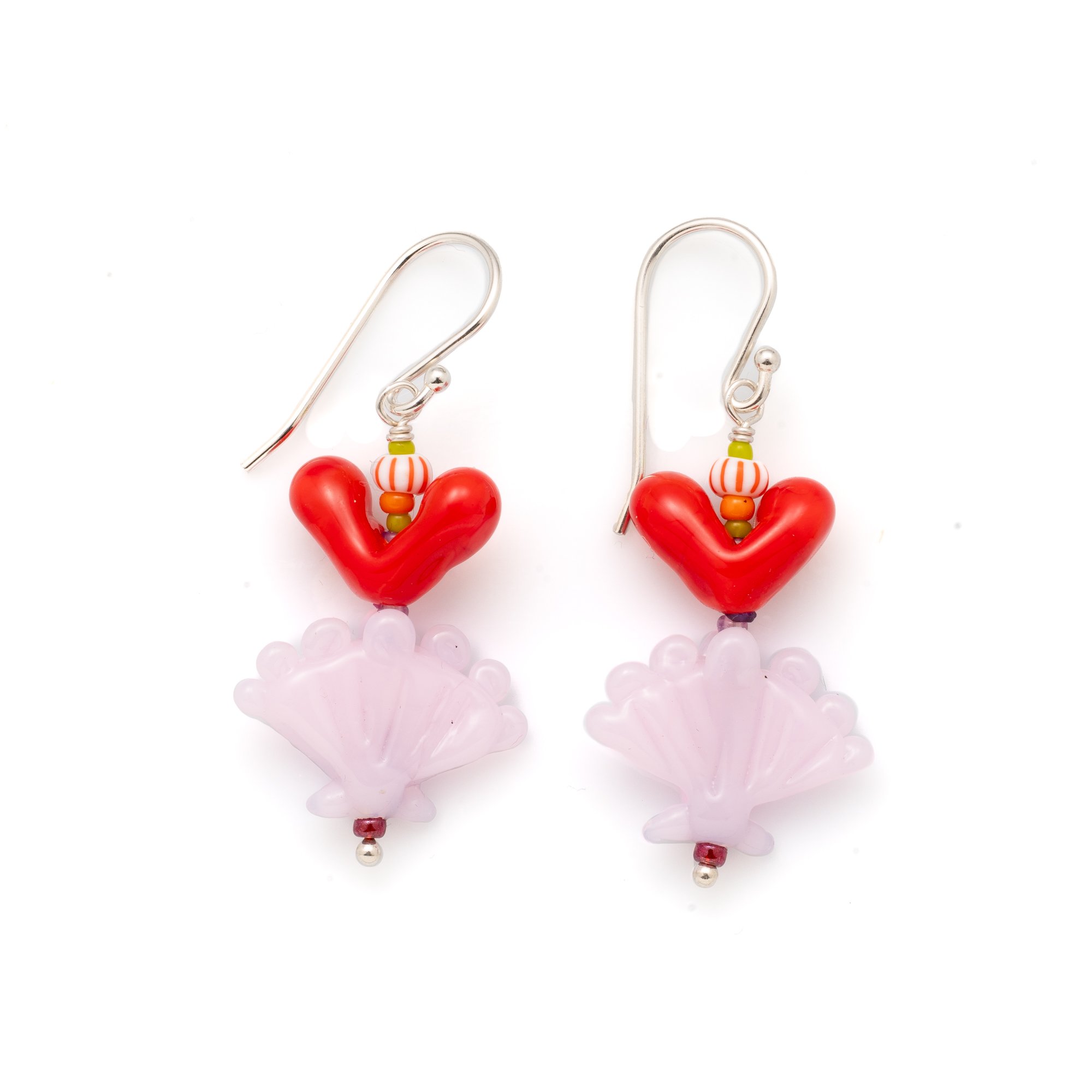 Wearable totems for one who loves the sea. My handmade scallop and heart beads, seed beads, sterling silver headpins and sterling earwires. They hang 1-3/4" long from the top of the earwire. The skulls are a little less than 7/8" across.