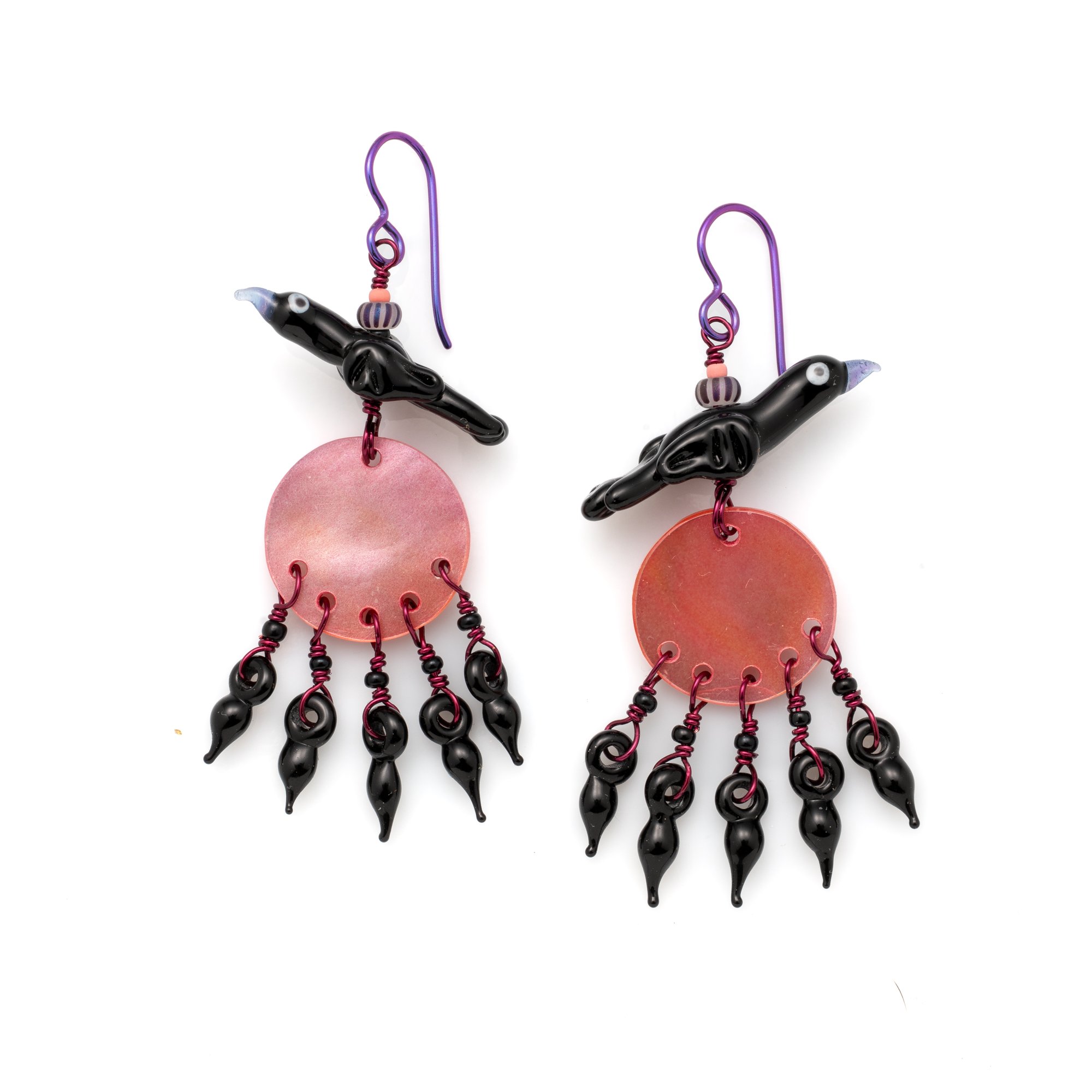 The pink moon (is actually in April), and it's associated with healing and renewal and these earrings are imbued with those wishes...plus the playful intelligence of the raven.