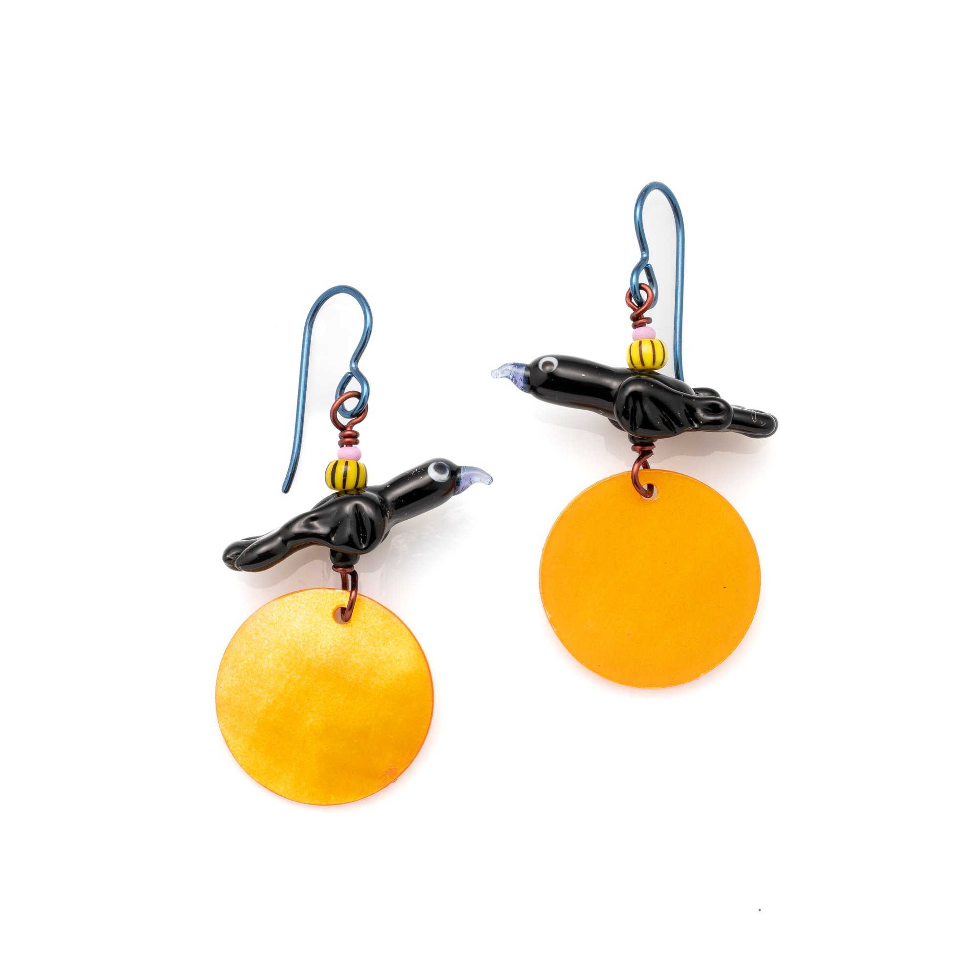 These earrings hang 2" long, from the top of the earwire. Niobium (hypoallergenic) findings. The birds are about 1-1/8" from tail to beak.