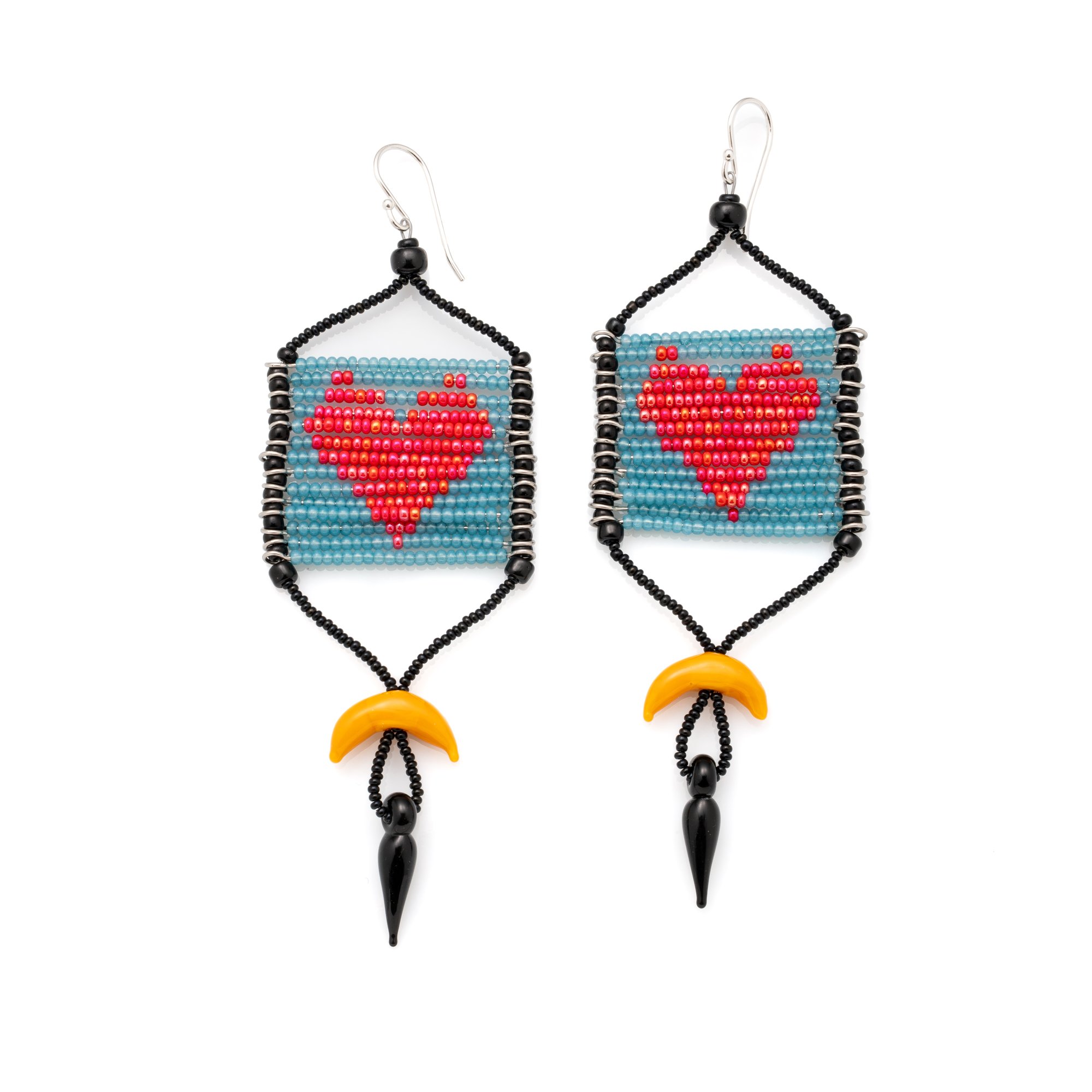 These are quite large, but weigh very little. Made from handmade glass moons, seed beads, nichrome wire and sterling earwires. They are strung on Soft Flex beading wire.